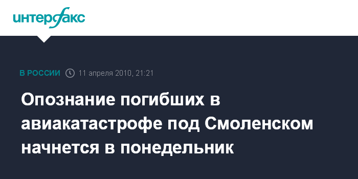 Опознание погибших в авиакатастрофе под Смоленском начнется в понедельник