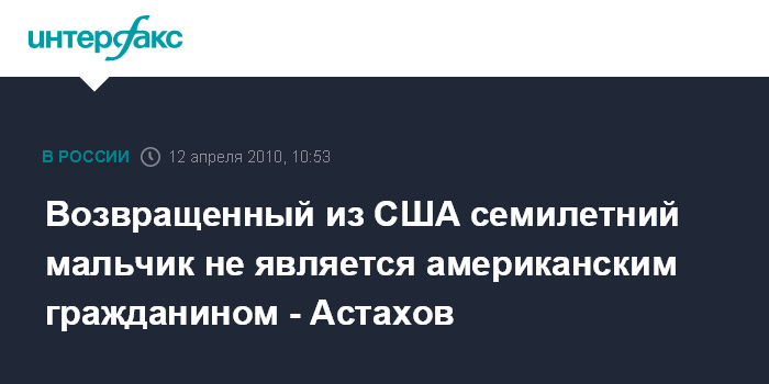 Возвращенный из США семилетний мальчик не является американским гражданином - Астахов