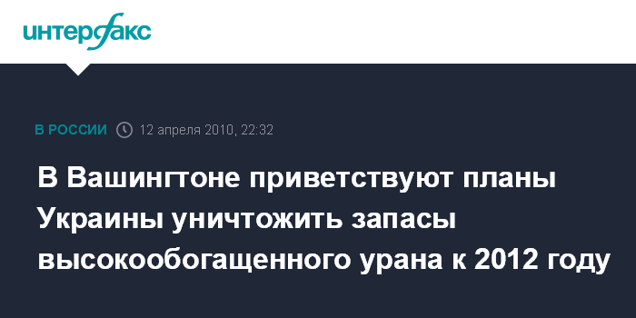 Вашингтон. 12 апреля. ИНТЕРФАКС - Украина приняла решение ликвидировать свои запасы высокообогащенного урана к 2012 году , сообщил на брифинге в ходе ядерного саммита в столице США пресс-секретарь Белого дома Роберт Гиббс.