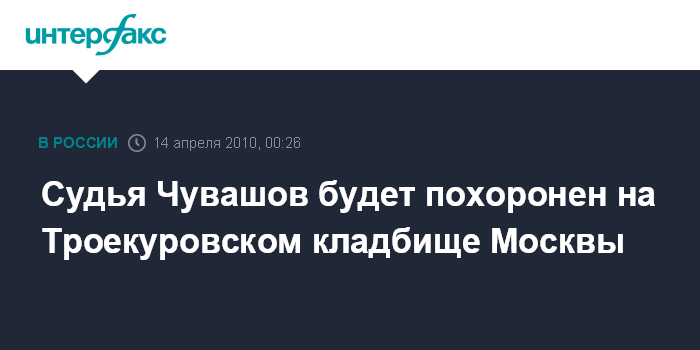 Судья Чувашов будет похоронен на Троекуровском кладбище Москвы