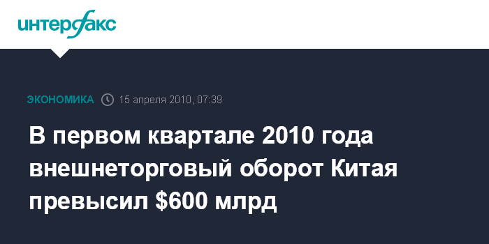 В первом квартале 2010 года внешнеторговый оборот Китая превысил $600 млрд