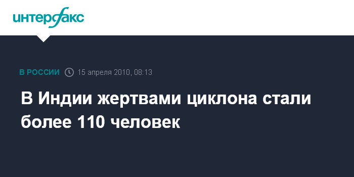 Москва. 15 апреля. INTERFAX.RU - На северо-востоке Индии не менее 116 человек стали жертвами мощного циклона, передает телеканал "Россия 24".