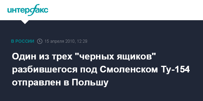 Один из трех "черных ящиков" разбившегося под Смоленском Ту-154 отправлен в Польшу