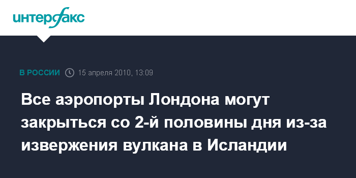 Все аэропорты Лондона могут закрыться со 2-й половины дня из-за извержения вулкана в Исландии
