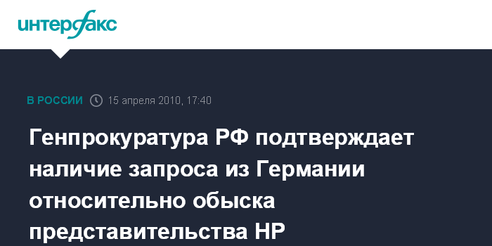 Генпрокуратура РФ подтверждает наличие запроса из Германии относительно обыска представительства HP
