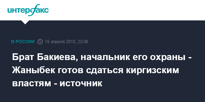 Брат Бакиева, начальник его охраны - Жаныбек готов сдаться киргизским властям - источник