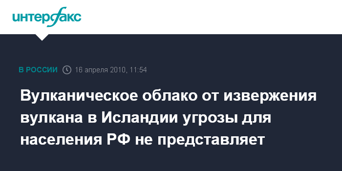 Вулканическое облако от извержения вулкана в Исландии угрозы для населения РФ не представляет