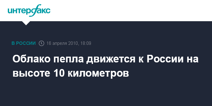 Облако пепла движется к России на высоте 10 километров