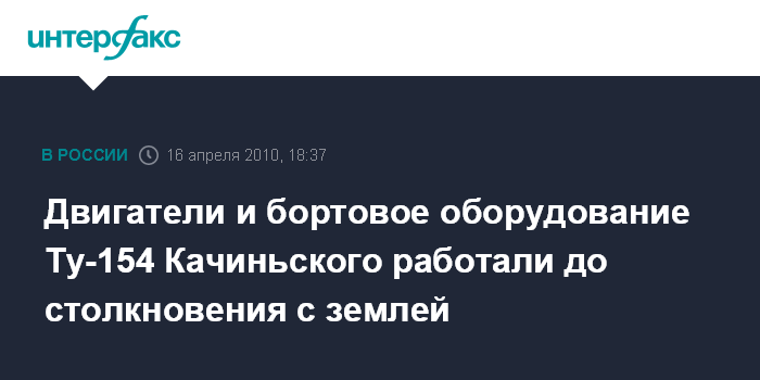 Двигатели и бортовое оборудование Ту-154 Качиньского работали до столкновения с землей