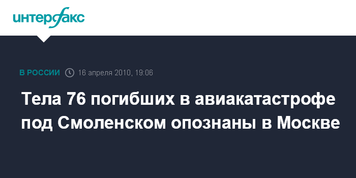Тела 76 погибших в авиакатастрофе под Смоленском опознаны в Москве