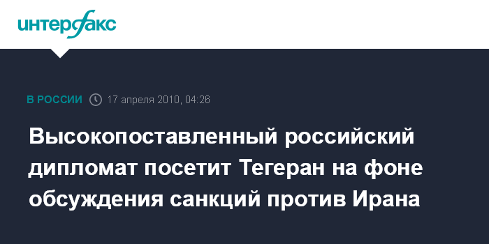 Высокопоставленный российский дипломат посетит Тегеран на фоне обсуждения санкций против Ирана