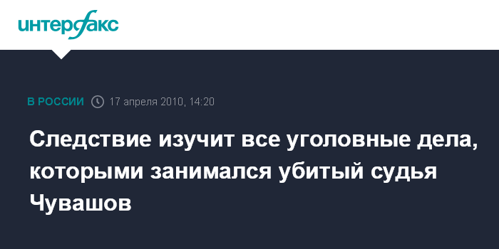 Москва. 17 апреля. INTERFAX.RU - Следствие детально изучает все дела, которые рассматривал судья Мосгорсуда Эдуард Чувашов, убитый 12 апреля, сообщила председатель Мосгорсуда Ольга Егорова.