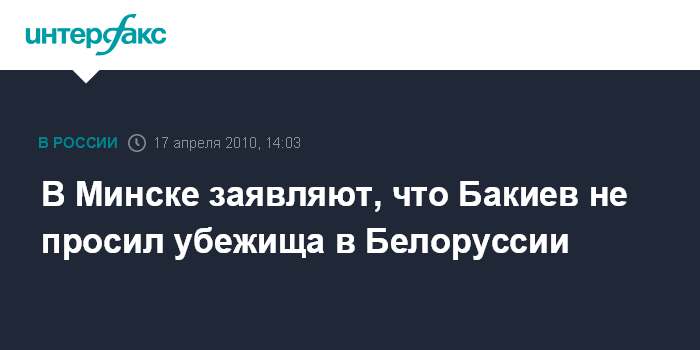 "Бакиев не прибывал в последние несколько дней на территорию Белоруссии. Данное лицо не обращалось к белорусской стороне с просьбой о предоставлении ему статуса беженца и убежища", - сказал Бегун.