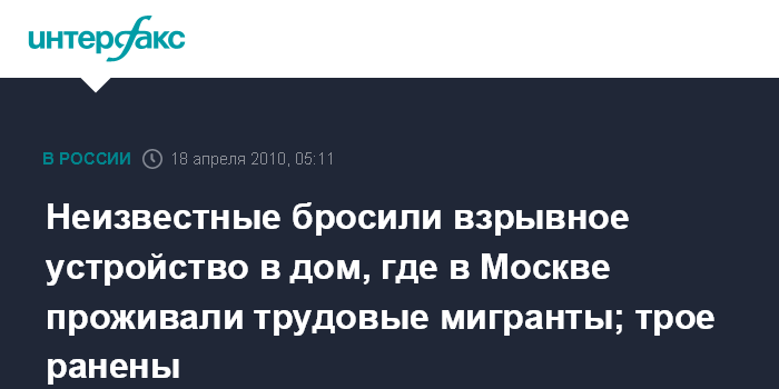 Неизвестные бросили взрывное устройство в дом, где в Москве проживали трудовые мигранты; трое ранены