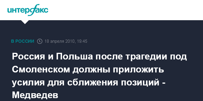 Россия и Польша после трагедии под Смоленском должны приложить усилия для сближения позиций - Медведев