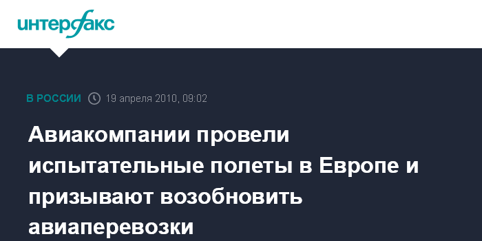 Этот призыв прозвучал после того, как авиакомпании "Бритиш Эйруэйз", КЛМ, "Люфтганза" и "Эр Франс" провели испытательные полеты в создавшихся условиях. Первоначальные результаты осмотра двигателей самолетов указывают на то, что никакой угрозы концентрация вулканического пепла в воздухе континентальной Европы и Великобритании для них не представляет.