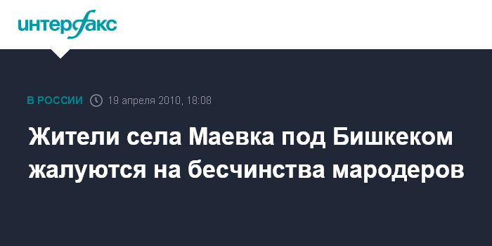 Бишкек. 19 апреля. INTERFAX.RU - В селе Маевка группа самозахватчиков проводят акции по запугиванию местного населения, заявляют жители этого населенного пункта.