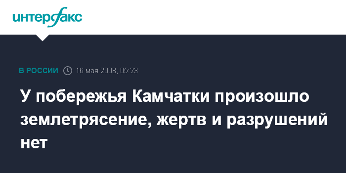 Петропавловск-Камчатский. 16 мая. ИНТЕРФАКС-ДАЛЬНИЙ ВОСТОК - У восточного побережья Камчатки на глубине 70 километров произошло землетрясение, которое не привело к разрушениям.