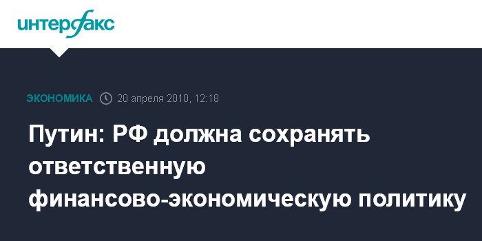 Путин: РФ должна сохранять ответственную финансово-экономическую политику