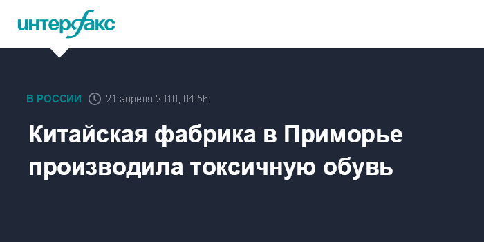 Владивосток. 21 апреля. ИНТЕРФАКС-ДАЛЬНИЙ ВОСТОК - Обувь, которую в течение трех лет производила в Приморье китайская фабрика, признана токсичной.