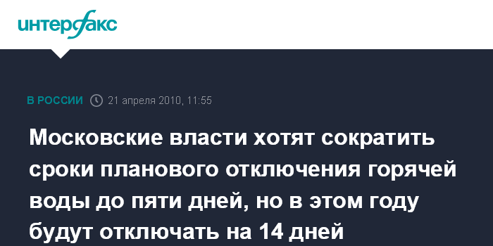 Московские власти хотят сократить сроки планового отключения горячей воды до пяти дней, но в этом году будут отключать на 14 дней
