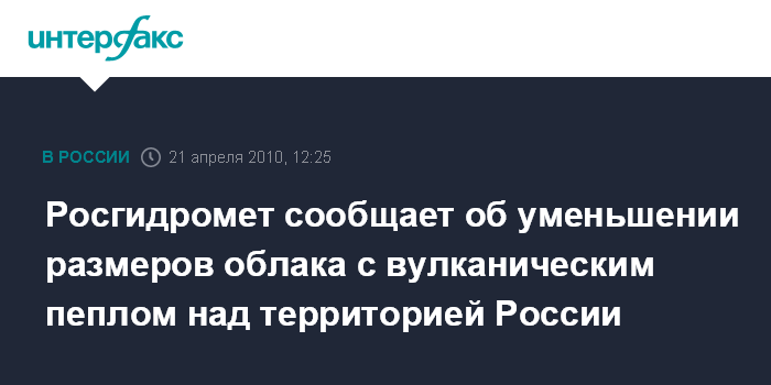 По данным ведомства, над территорией России облако уменьшилось. "Следы облака вулканического пепла органами метеорологического слежения авиаметстанций за период с 22:00 мск 20 апреля до 04:00 мск 21 апреля визуально не наблюдались", - говорится в сообщении.