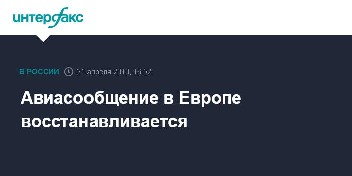 Брюссель. 21 апреля. INTERFAX.RU - Авиасообщение над Европой, нарушенное в результате извержения вулкана в Исландии, постепенно возвращается в нормальное русло.