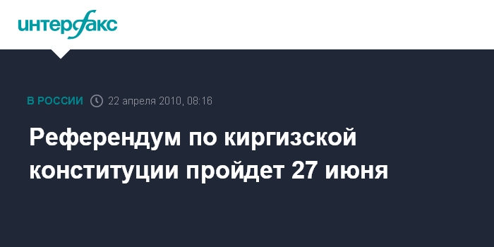 Москва. 22 апреля. INTERFAX.RU - Временное киргизское правительство назначило референдум по новой киргизской конституции на 27 июня, а парламентские выборы на10 октября.