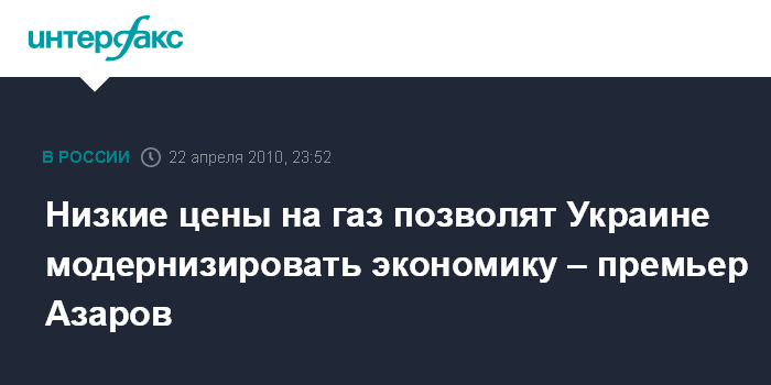 Низкие цены на газ позволят Украине модернизировать экономику – премьер Азаров