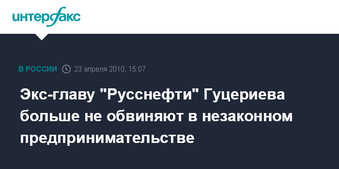 Москва. 23 апреля. INTERFAX.RU - Уголовное преследование предпринимателя Михаила Гуцериева в связи с незаконным предпринимательством прекращено, сообщил "Интерфаксу" пресс-секретарь следственного комитета (СК) при МВД РФ Ирина Дудукина. "Уголовное преследование экс-главы компании "Русснефть" Гуцериева по обвинению в незаконной предпринимательством деятельности прекращено на основании статьи 24 УПК (за отсутствием состава преступления)", - отметила Дудукина. Она подчеркнула, что данное решение связано с изменением законодательства.