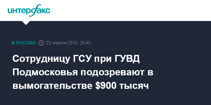 Сотрудницу ГСУ при ГУВД Подмосковья подозревают в вымогательстве $900 тысяч