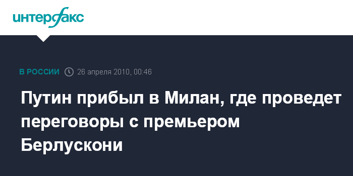 Путин прибыл в Милан, где проведет переговоры с премьером Берлускони