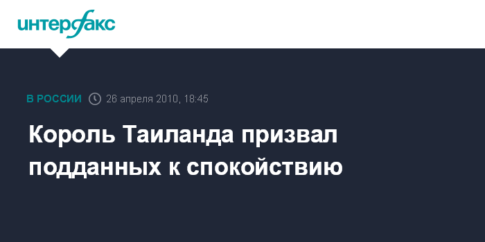 Бангкок. 26 апреля. INTERFAX.RU - Пумипон Адульядет, король Таиланда, находящийся в больнице, начиная с сентября 2009 года, прервал молчание и призвал подданных к спокойствию, сообщило в понедельник агентство ЭФЭ.