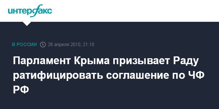 Симферополь. 26 апреля. INTERFAX.RU - Президиум Верховного Совета Крыма направил в Верховную Раду обращение, в котором заявил о поддержке соглашения о продлении срока пребывания Черноморского флота РФ и призвал депутатов ратифицировать данное соглашение 27 апреля.