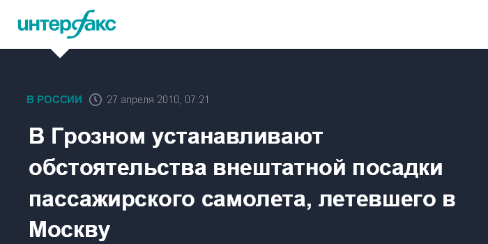 Ростов-на-Дону. 27 апреля. ИНТЕРФАКС - Пассажирский авиалайнер, выполнявший рейс по маршруту Грозный - "Внуково", совершил внештатную посадку в аэропорту столицы Чечни.
