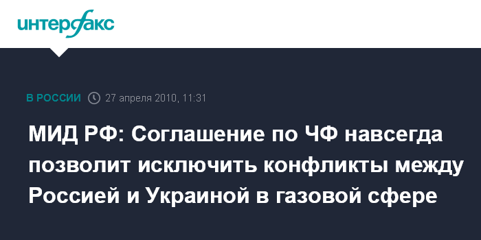 МИД РФ: Соглашение по ЧФ навсегда позволит исключить конфликты между Россией и Украиной в газовой сфере