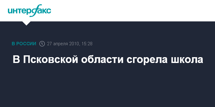 Москва. 27 апреля. INTERFAX.RU - В Дедовичском районе Псковской области во вторник в результате пожара полностью сгорело здание средней школы, никто не пострадал, сообщает пресс-служба областной администрации.
