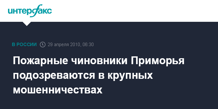 Пожарные чиновники Приморья подозреваются в крупных мошенничествах