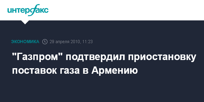 Москва. 29 апреля. INTERFAX.RU – "Газпром" подтвердил приостановку поставок газа в Армению,