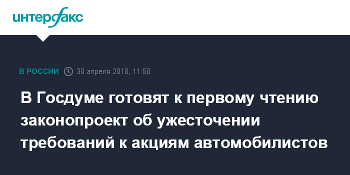 В Госдуме готовят к первому чтению законопроект об ужесточении требований к акциям автомобилистов