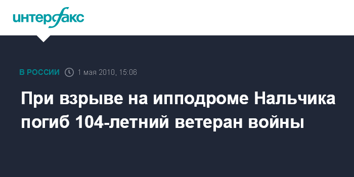 Москва. 1 мая. INTERFAX.RU – В больнице скончался один из пострадавших в результате взрыва на ипподроме Нальчика.
