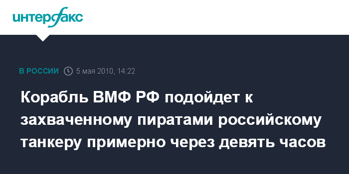 Корабль ВМФ РФ подойдет к захваченному пиратами российскому танкеру примерно через девять часов