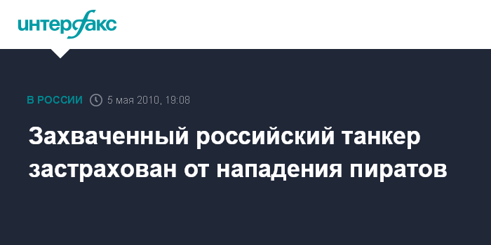 По его словам, "судно шло с полным пакетом страховок, в том числе оно было застраховано от нападения пиратов".