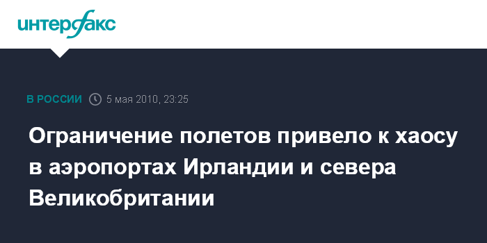 Лондон. 5 мая. ИНТЕРФАКС - Частичное ограничение полетов над Ирландией и территориями на севере и северо-западе Великобритании из-за нового распространения облака вулканического пепла исландского вулкана привело в среду к хаосу в работе аэропортов двух стран, сообщило в среду агентство ЭФЭ.