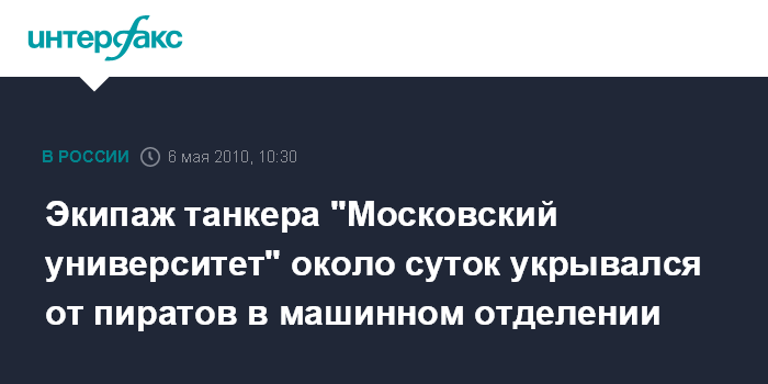 Экипаж танкера "Московский университет" около суток укрывался от пиратов в машинном отделении
