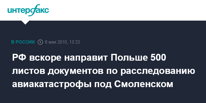 РФ вскоре направит Польше 500 листов документов по расследованию авиакатастрофы под Смоленском