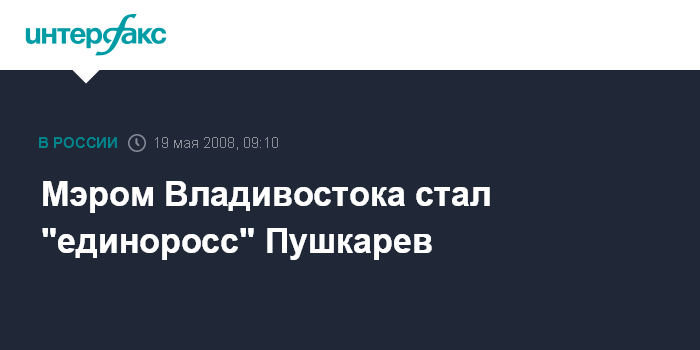 Владивосток. 19 мая. INTERFAX.RU - Сенатор Игорь Пушкарев победил на состоявшихся вчера досрочных выборах мэра Владивостока в первом туре.
