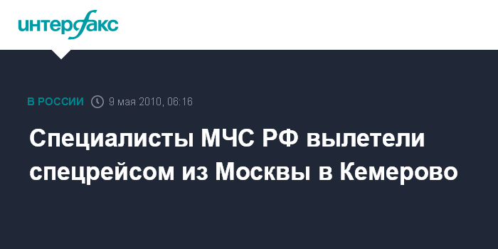 Жуковский (Московская область). 9 мая. ИНТЕРФАКС - Из Москвы в Кемеровскую область вылетел спецрейс МЧС РФ со специалистами отряда МЧС РФ.