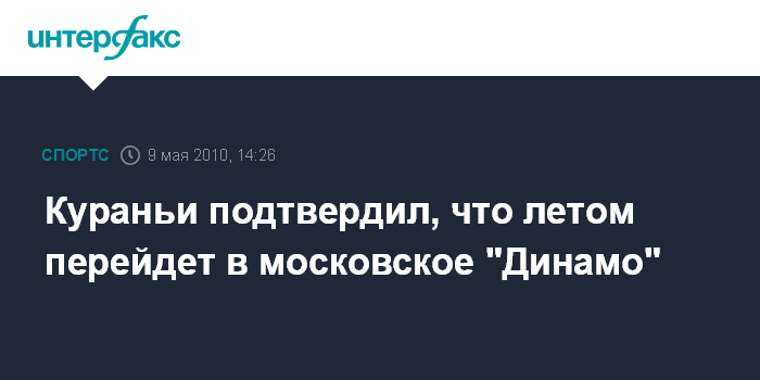Москва. 9 мая. INTERFAX.RU - Нападающий "Шальке-04" Кевин Кураньи подтвердил, что в межсезонье станет игроком московского "Динамо", сообщил "Спорт-Экспресс" со ссылкой на AP. Контракт форварда с немецким клубом истекает в конце июня.