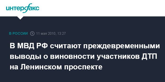 В МВД РФ считают преждевременными выводы о виновности участников ДТП на Ленинском проспекте